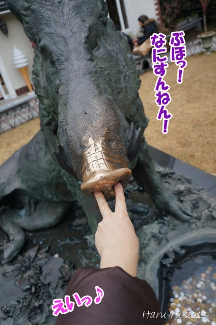 鼻に触れると幸運を呼ぶといわれています。