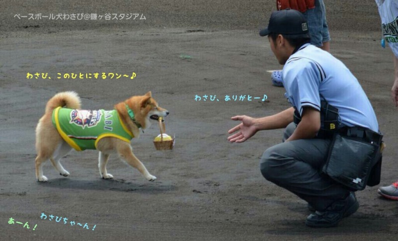 と球審さんにも、なでなでもふもふ してもらうわさび ↓↓↓
