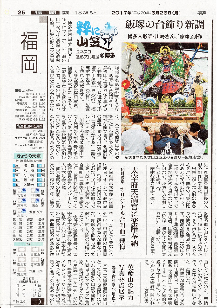 翌日の朝日新聞・31面「福岡版」に記事を掲載していただきました。