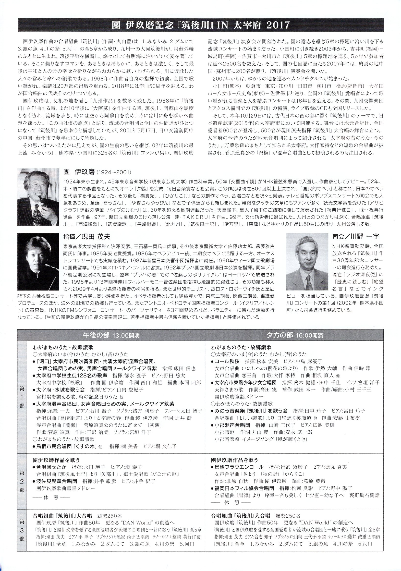 この「團伊玖磨 記念『筑後川』」の演奏会は、