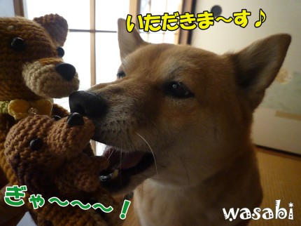 (プチ大豆くんは、編み編みわさびがしっかり抱いたまま、笑)