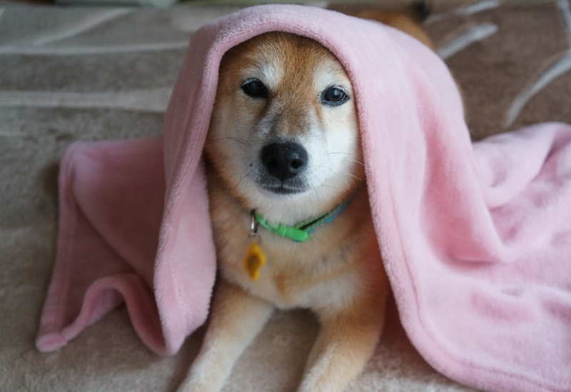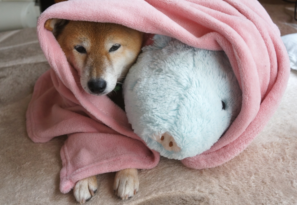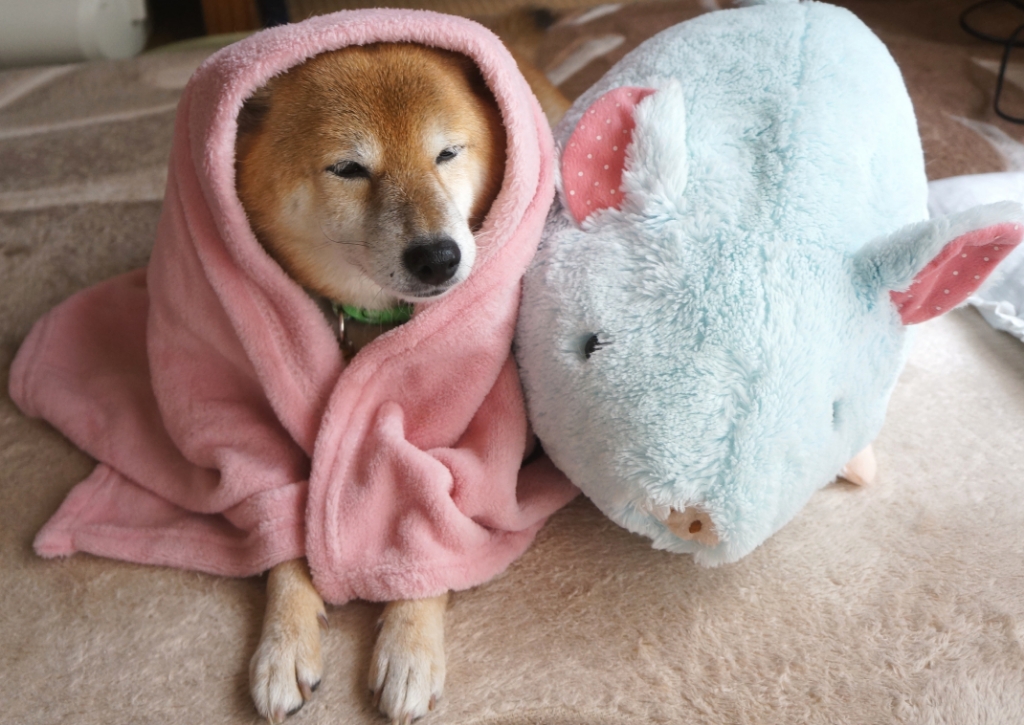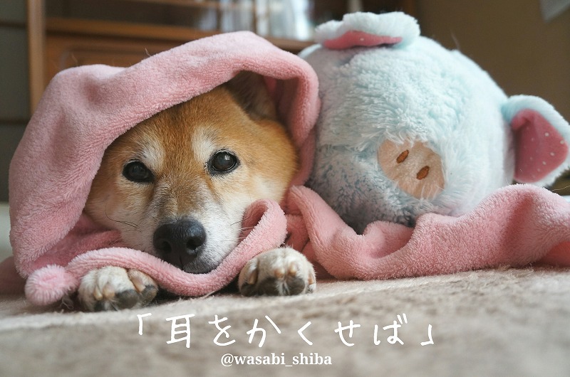 わさびは、隠してあげたお耳も丸見え状態で、