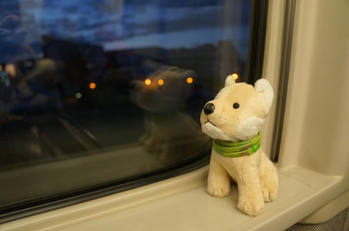 わさびの代役として、新幹線で長野へやってきたわらびたん。