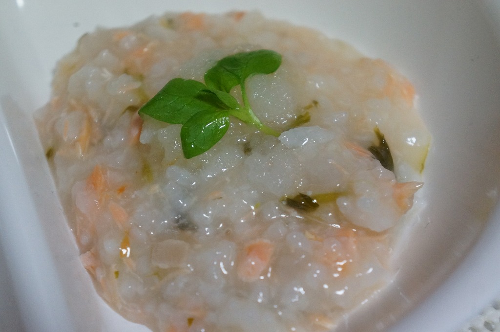 その時にササミや鮭や卵のお粥を作ったらおいしかったらしく…