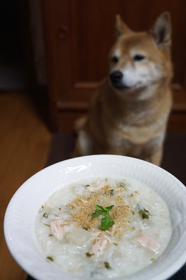 「おかゆになってから おこえかけてワンね…」