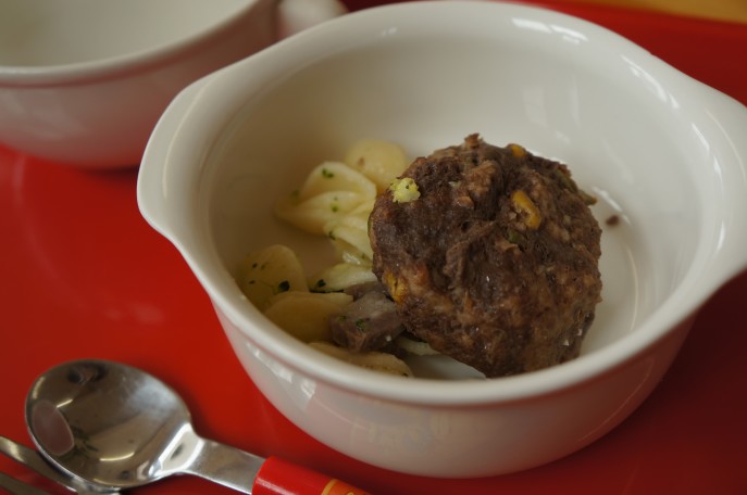 ↑↑ わんこメニュー。わんバーグ(奥)とわんこミートローフ。