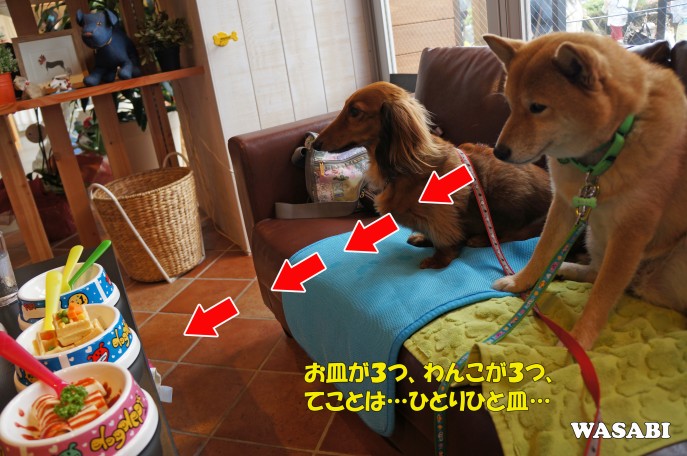 ケンタくんがピンクで、わさびが青のお皿って!!笑