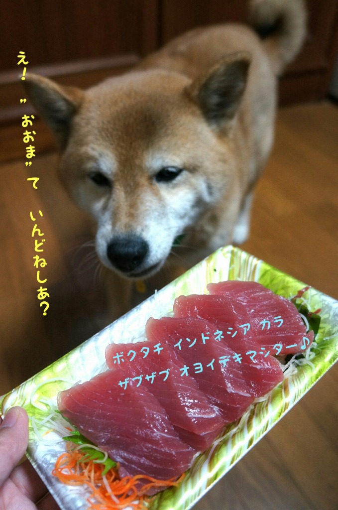 まぐろをつれて かえってくるワンて。