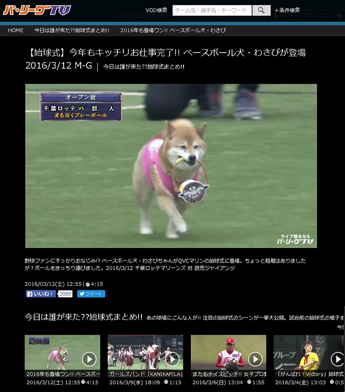 パ・リーグTVさんの動画をご紹介。