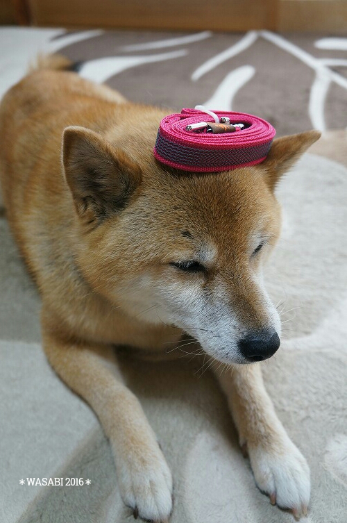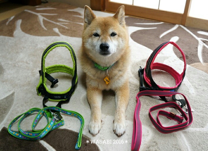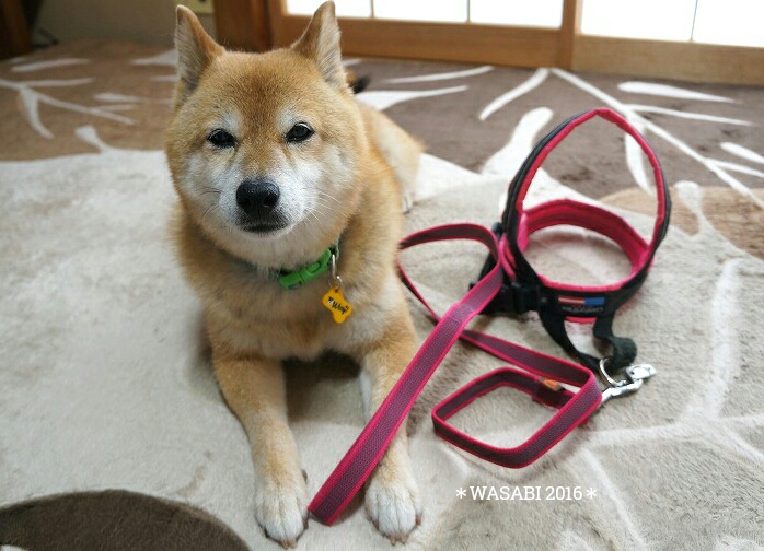 首輪とリードは、いままで通り「わさび色」にしていました。