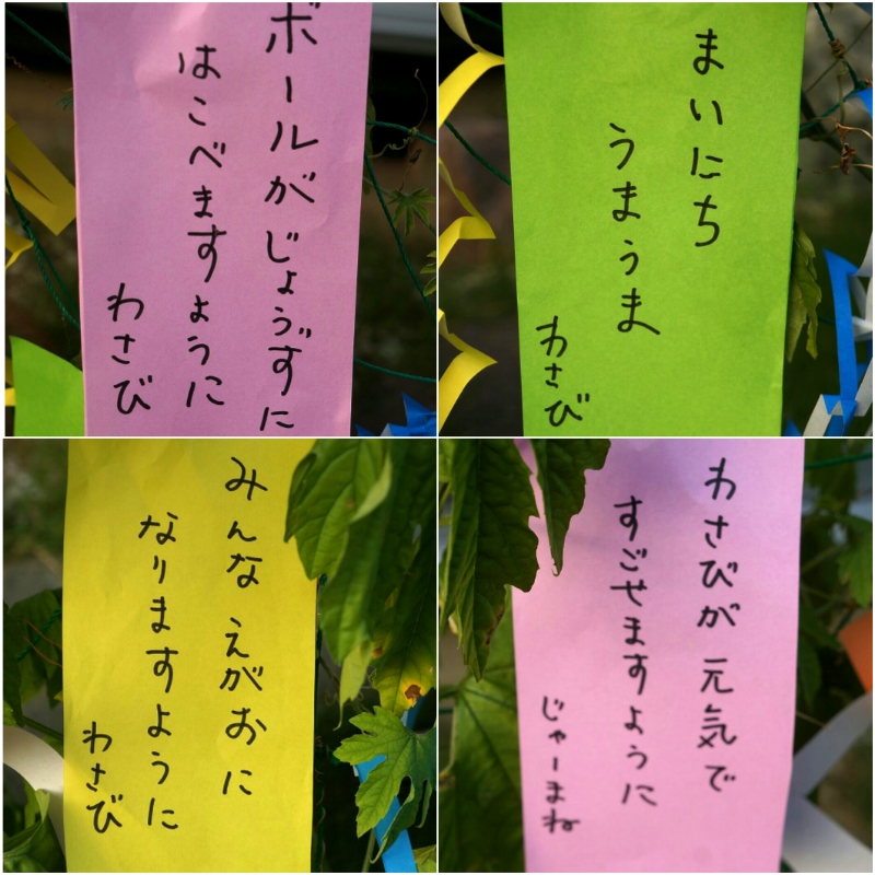 実は、こうしてわさびと七夕の飾りつけをしたのは初めてかも?