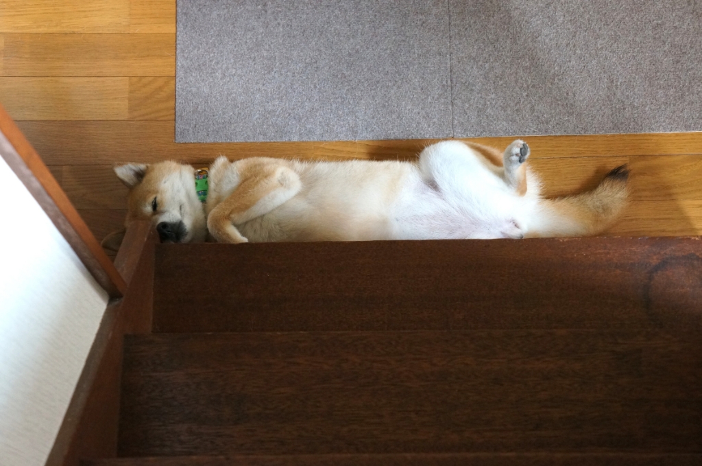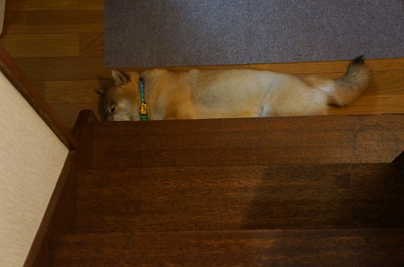 夏は特に、この階段の下がお気に入りのわさびなのですが、