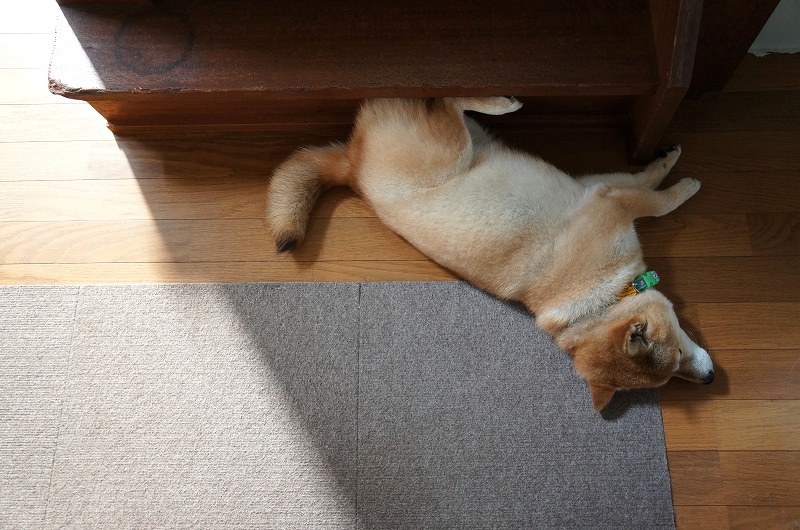 クーラーをつけていると、部屋のド真ん中でおヘソ出して寝てたりするので、