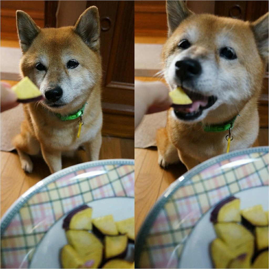 「むしたてのおいも うまうまワンよ♪」