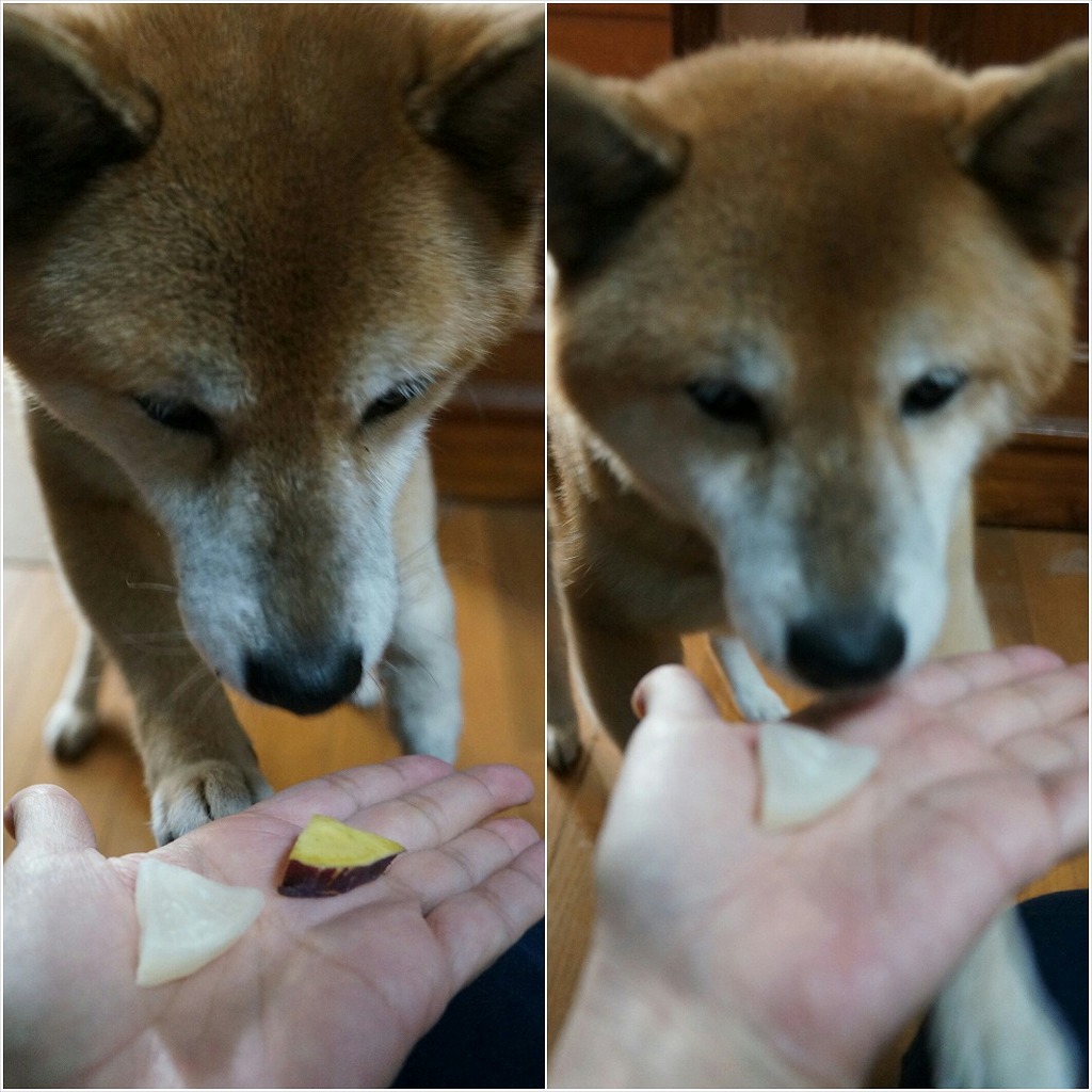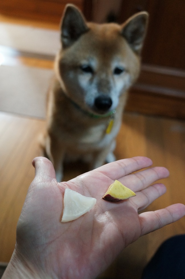 おいもと大根を、それぞれお鼻のまでクンクンさせてから、