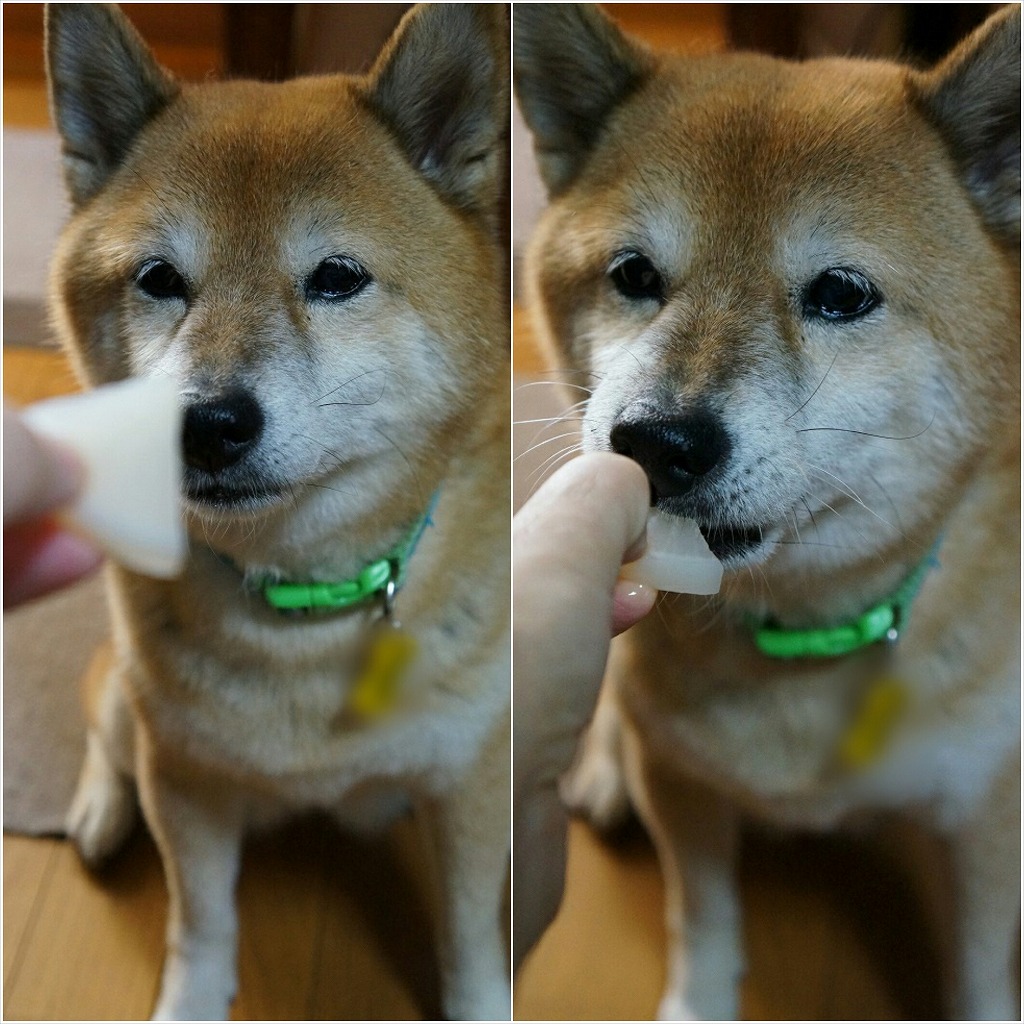 おやつはあげやすいように、少しだけ大きめ)