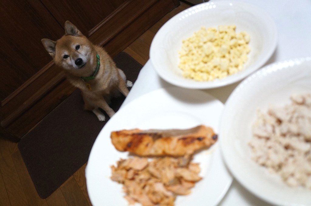 鮭をほぐしている間にも、ずっとねばっていたよ。