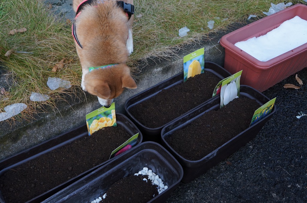 もっと早めに植えようと、11月中には、2人で園芸コーナーへ行き、