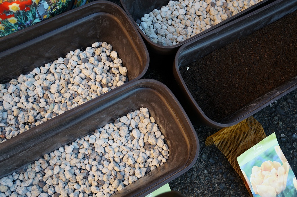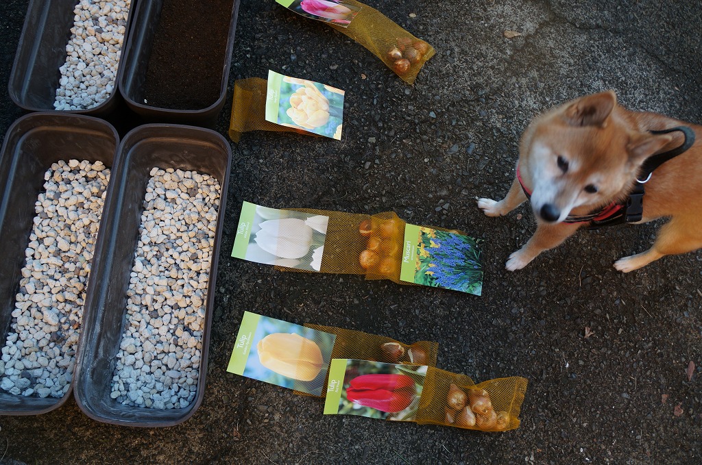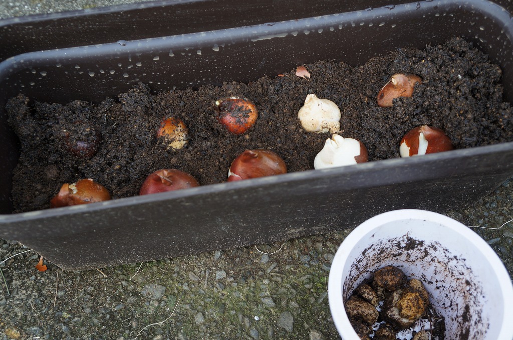 残り3個の球根が仮住まいなのと、プランター1つが空いています。