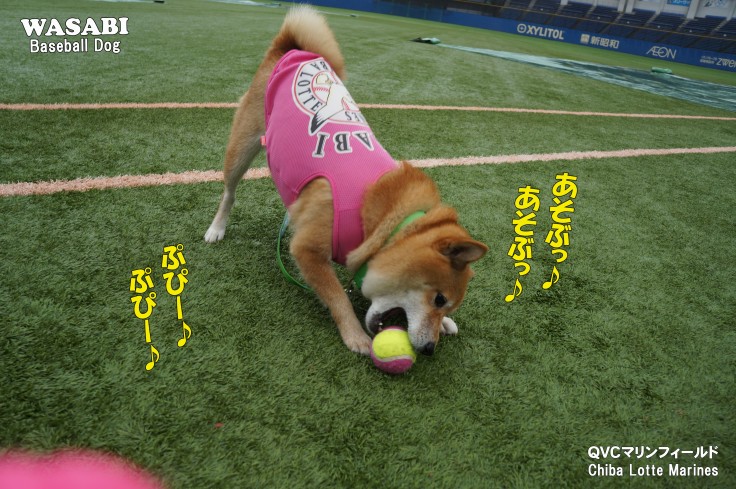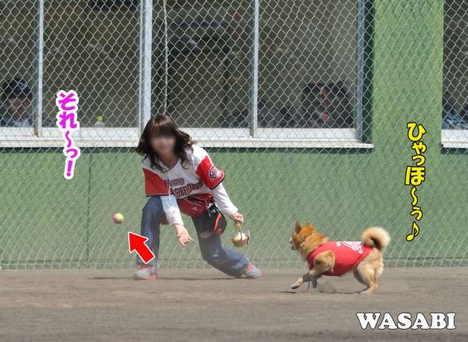 始球式直前に、わさびが楽しい気持ちになるよう、