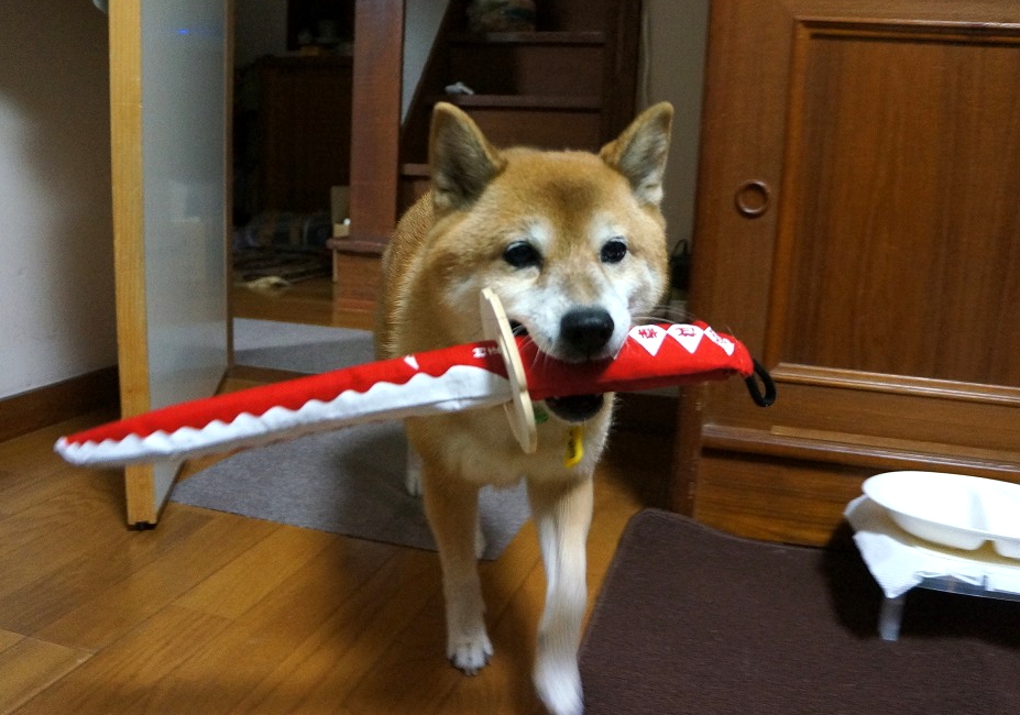 ぷぴぷぴ鳴る、刀のおもちゃです。