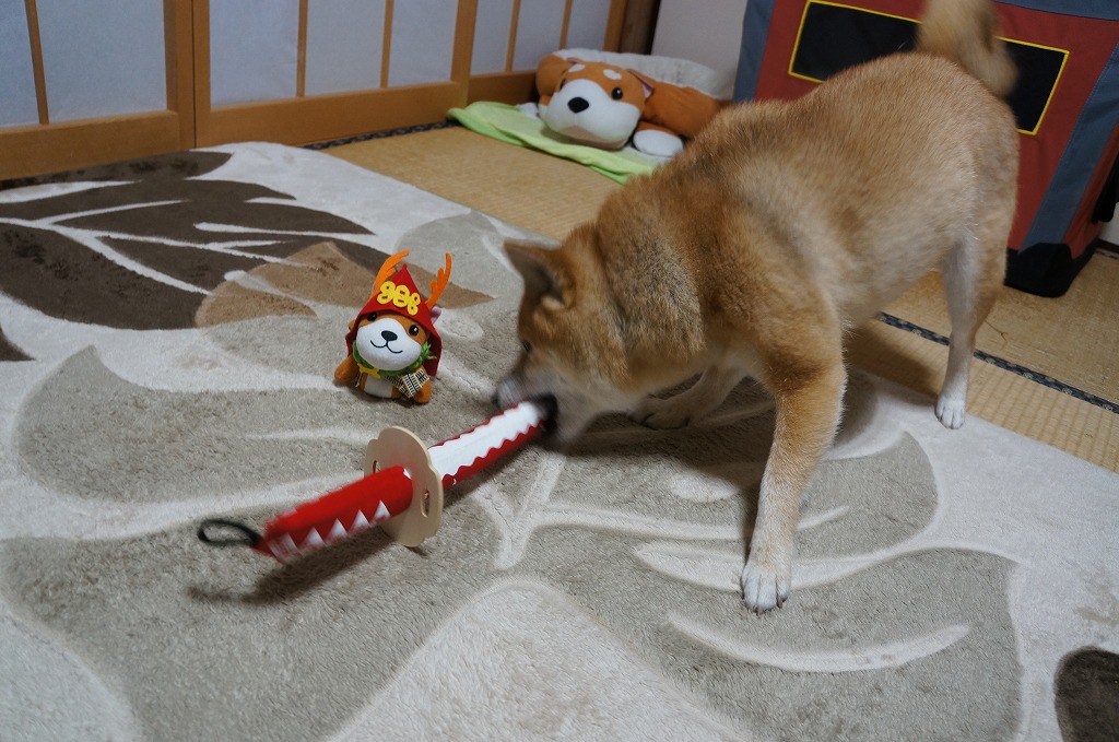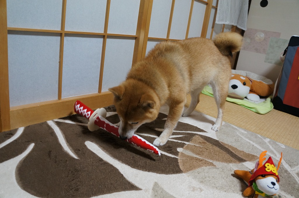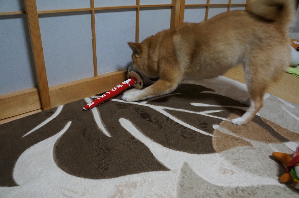 音が鳴るおもちゃが大好きなわさびは、