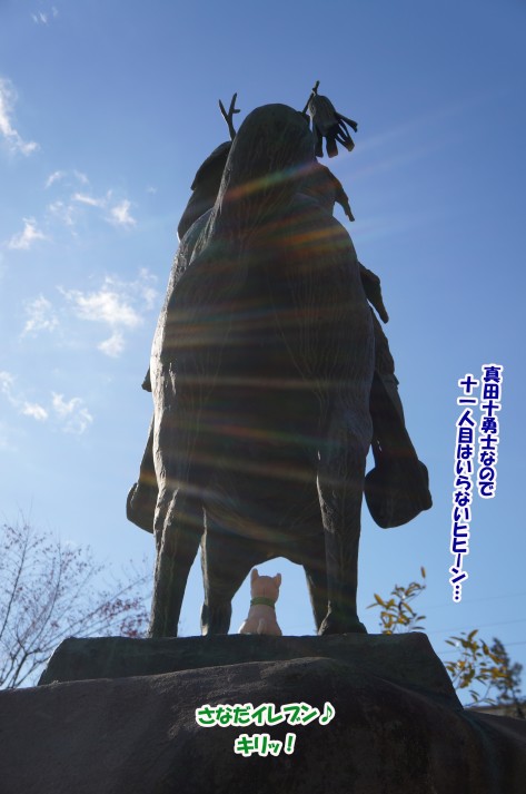 駅前の馬上の幸村像で、幸村しゃまと約束をした「わらびたん」