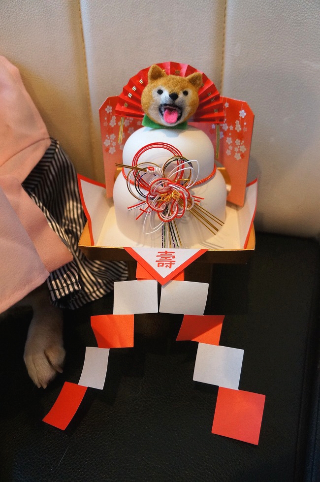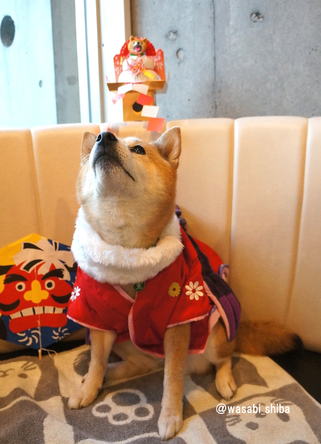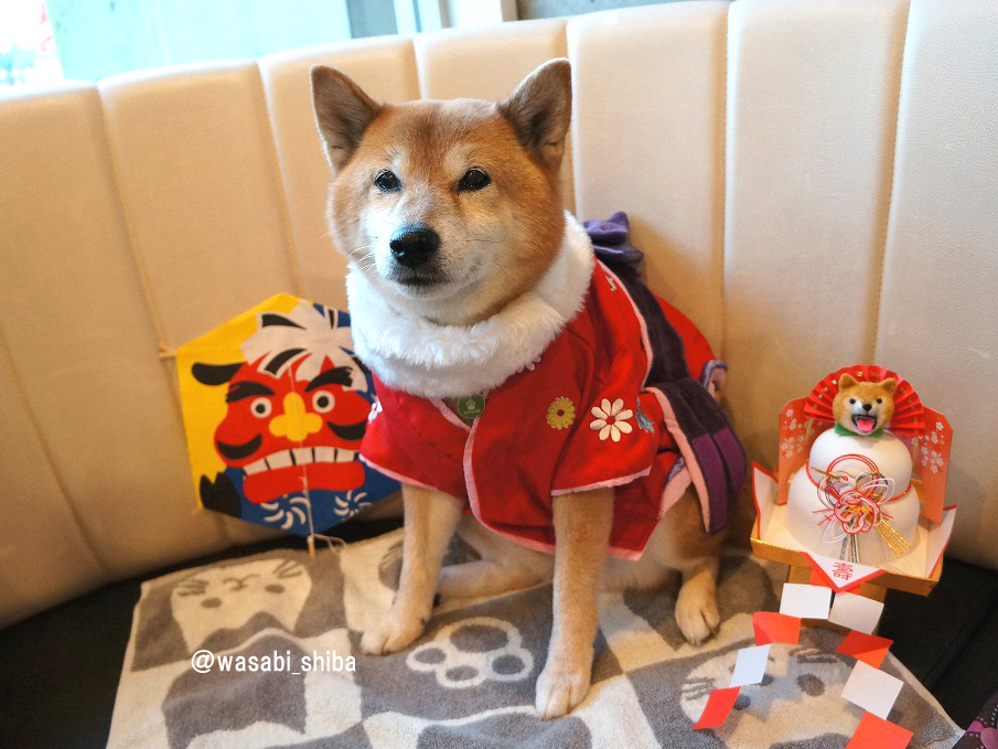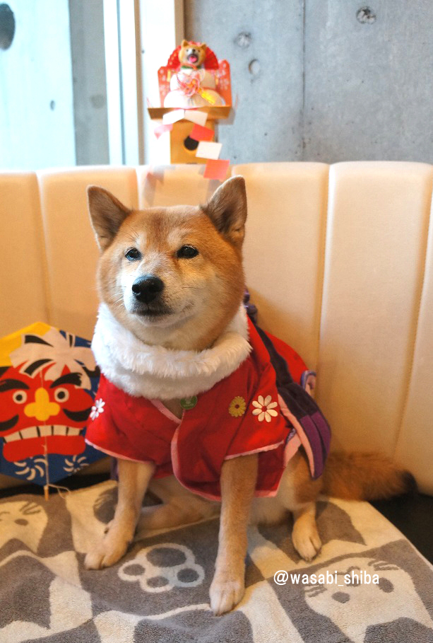 「赤いおきものも きたワンよー どすこい!」