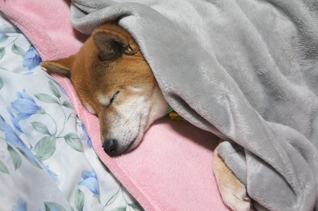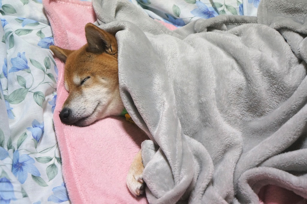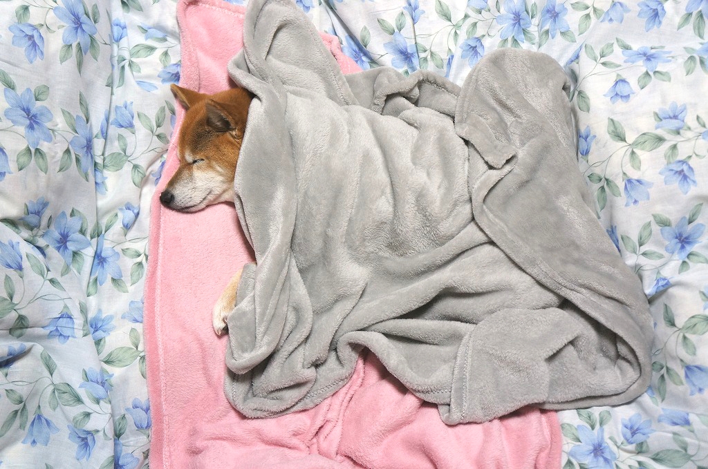 毛布までかけて ぬくぬくおやすみになっているわさび。