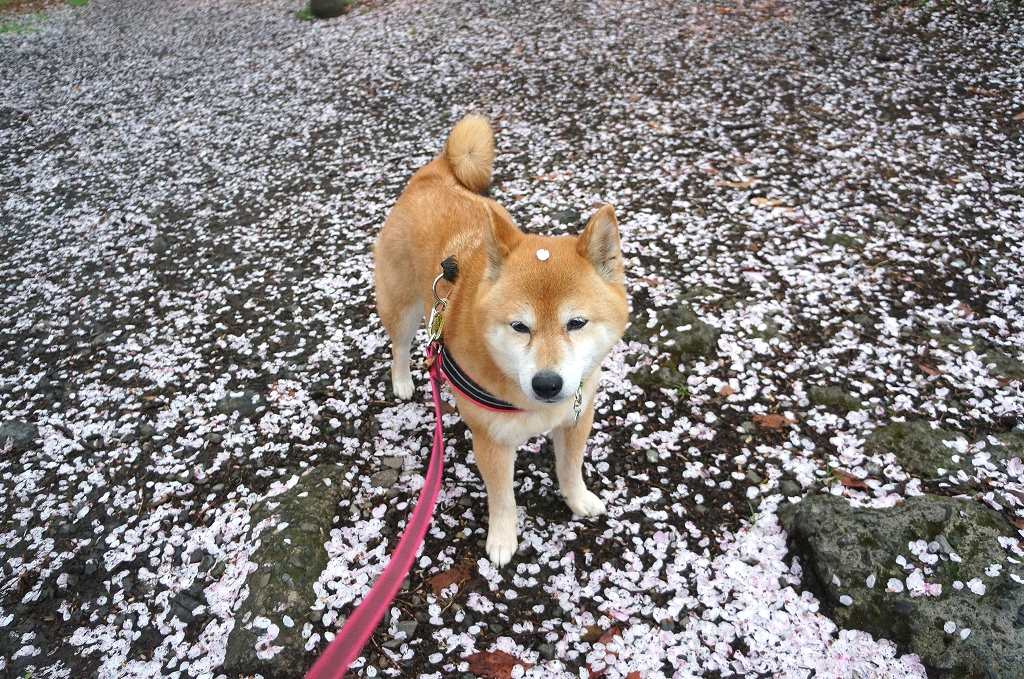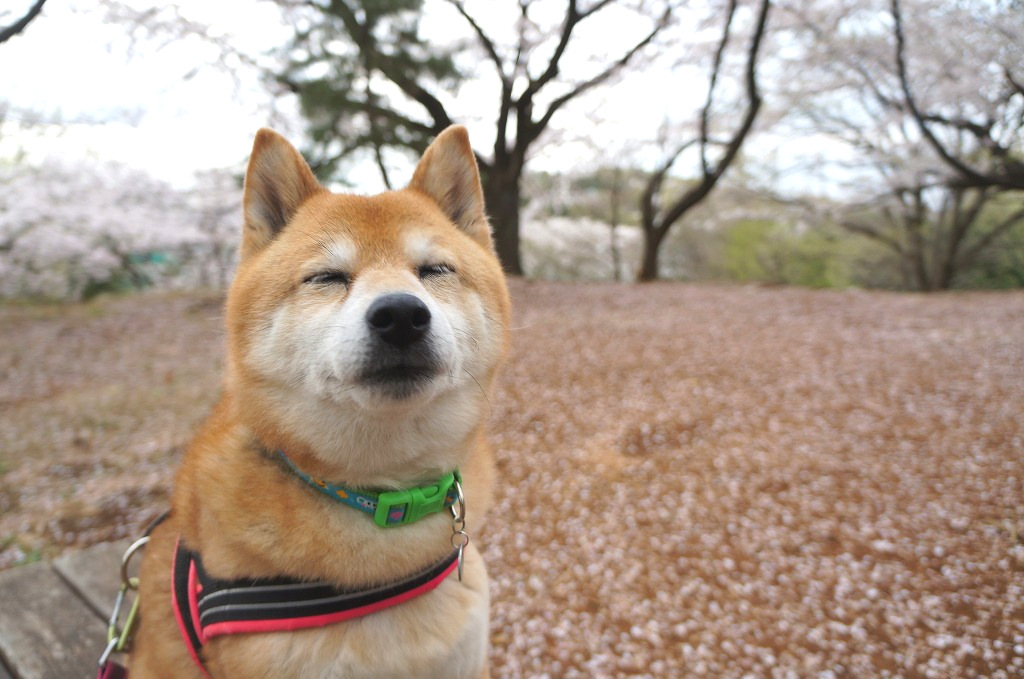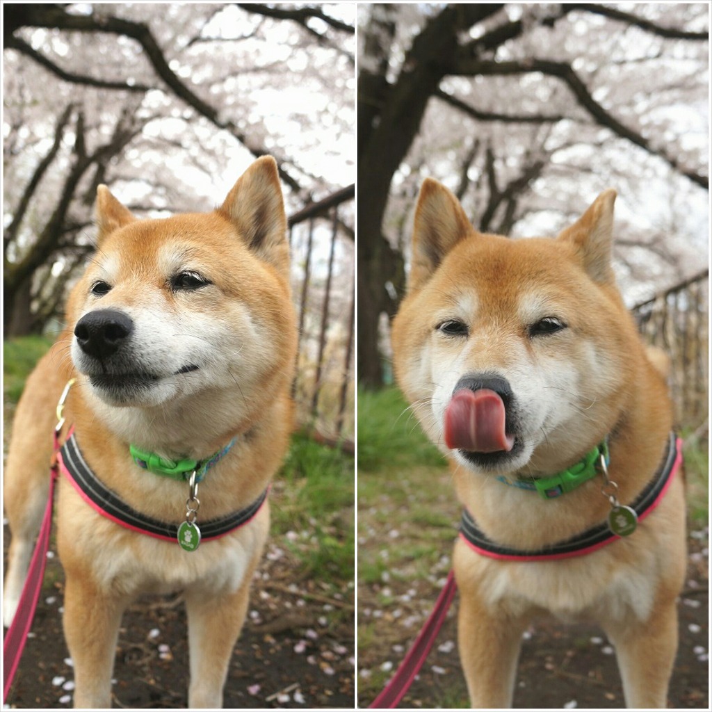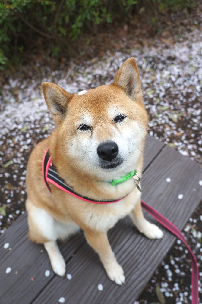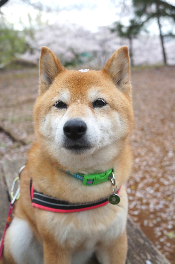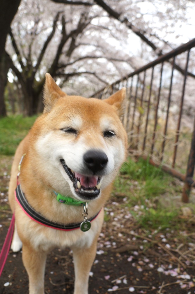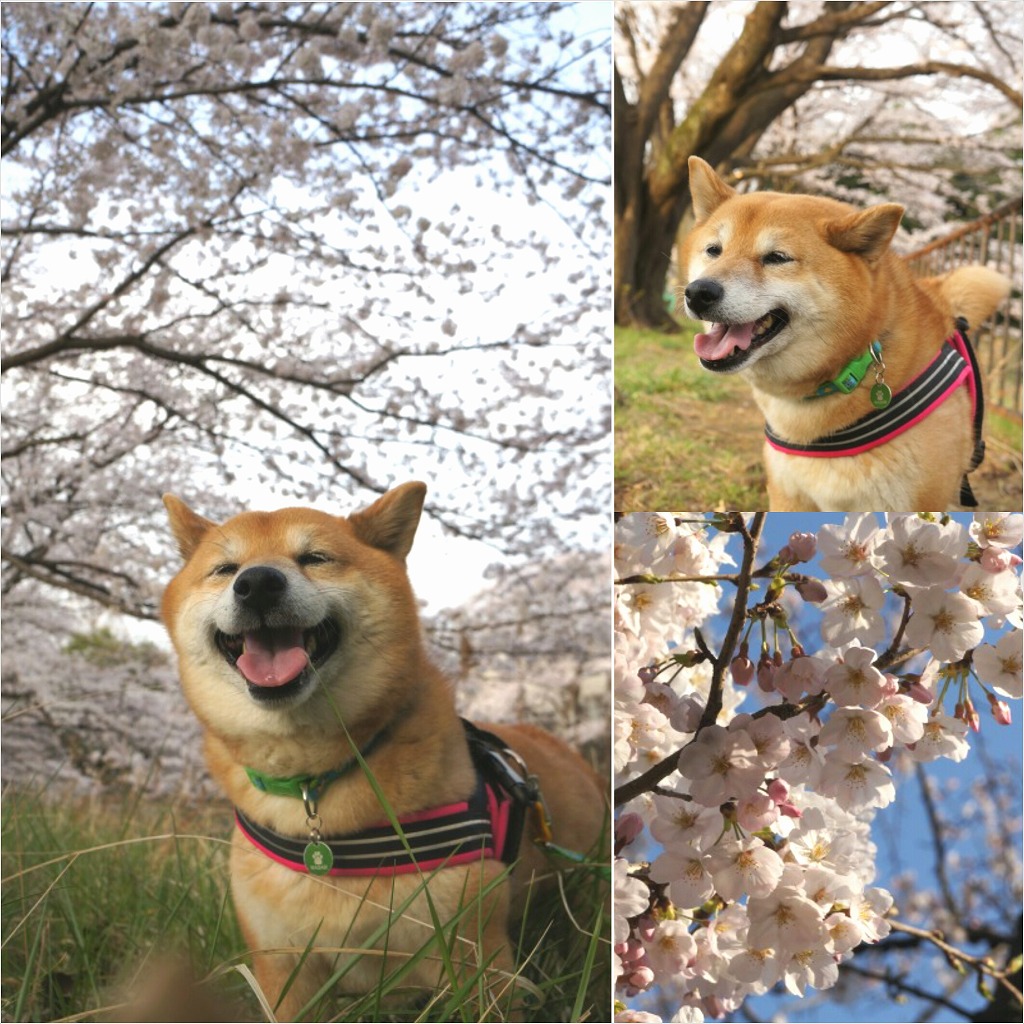 桜の下でわさびと笑顔でお散歩できて楽しかった。