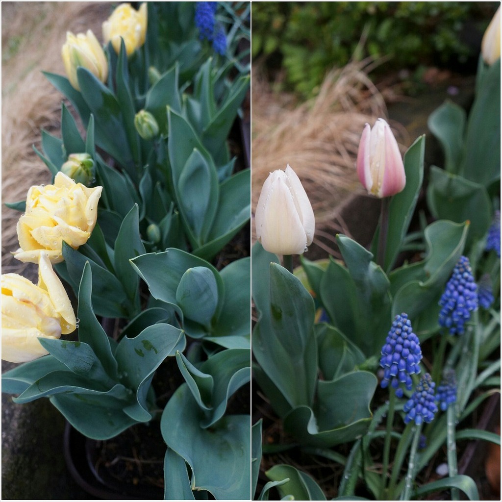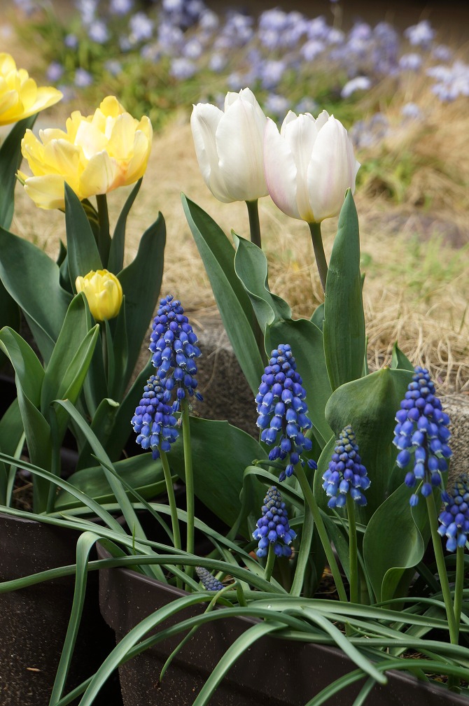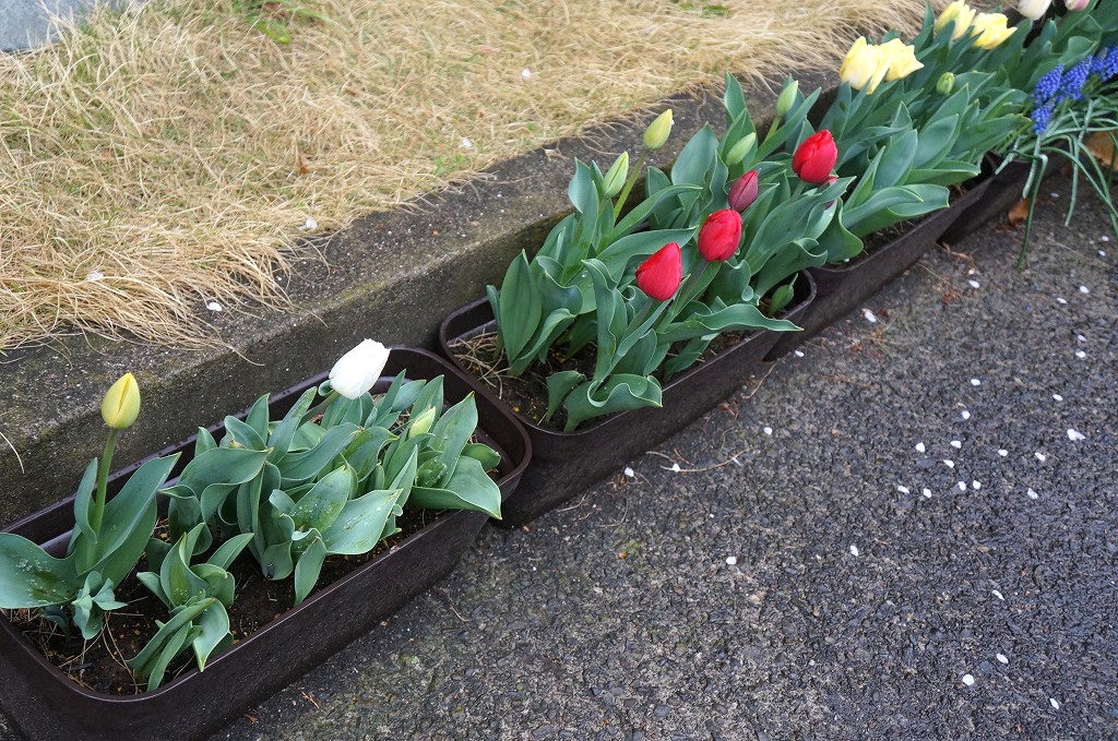 赤、白、黄色(2種類)、ピンク、ムスカリ、