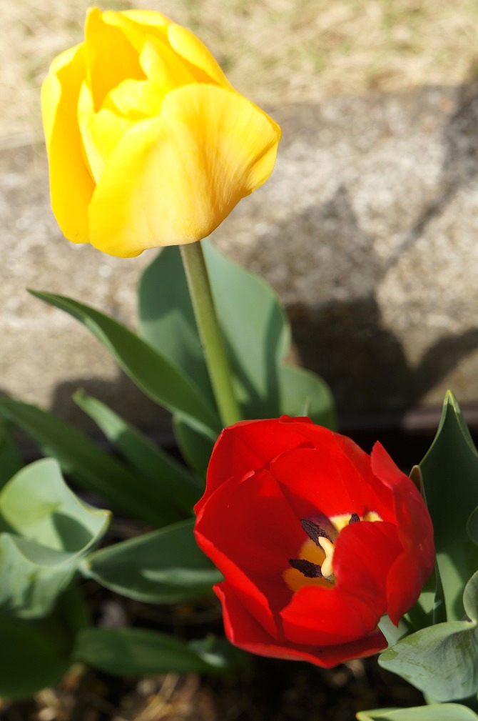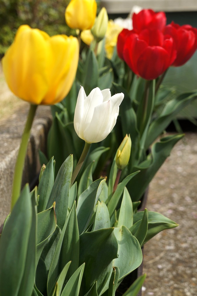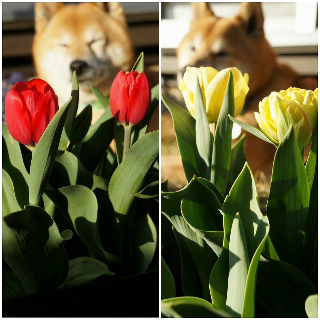 左上は、黄色のチューリップで、