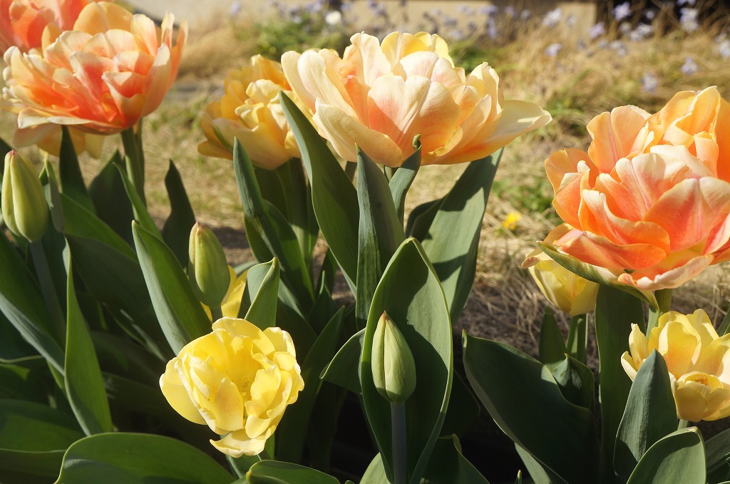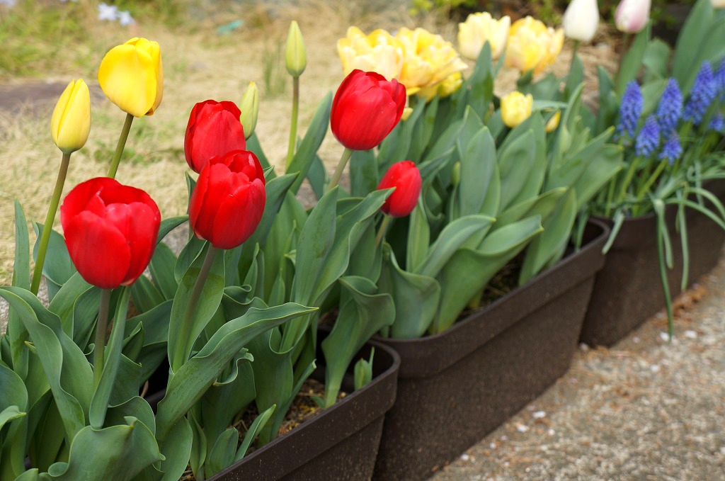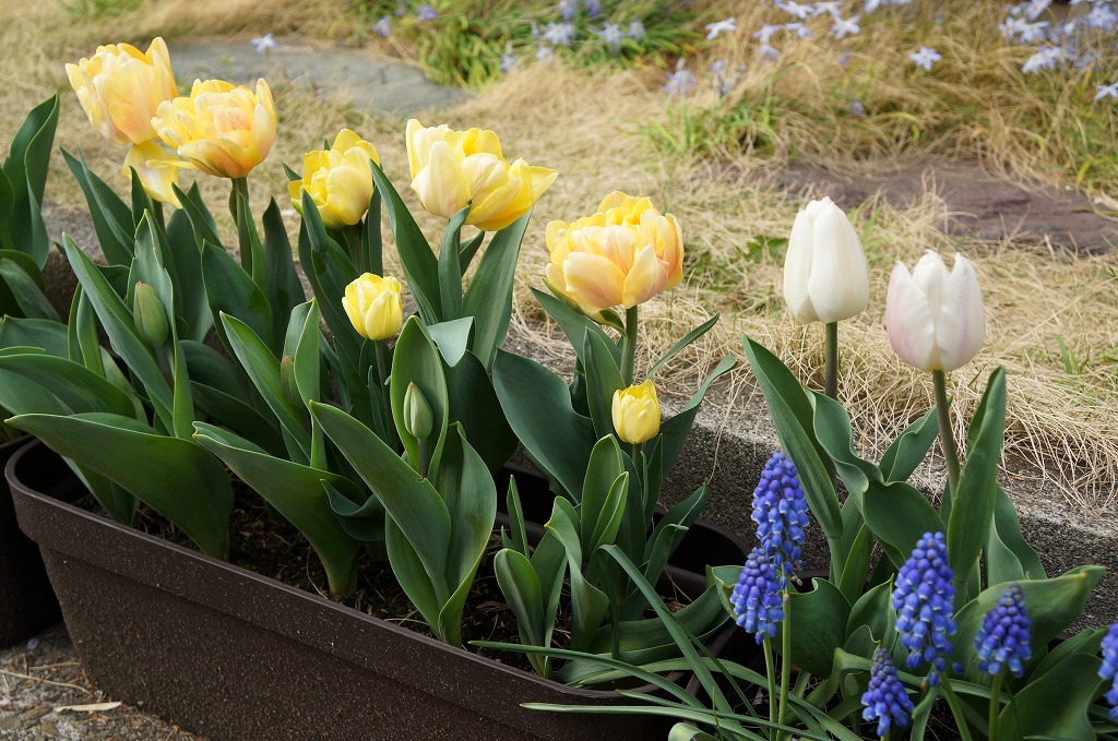前列にオランダ球根を植えて、後列にホームセンターのを植えたのですが、