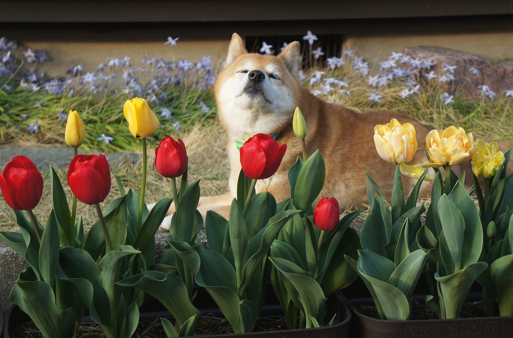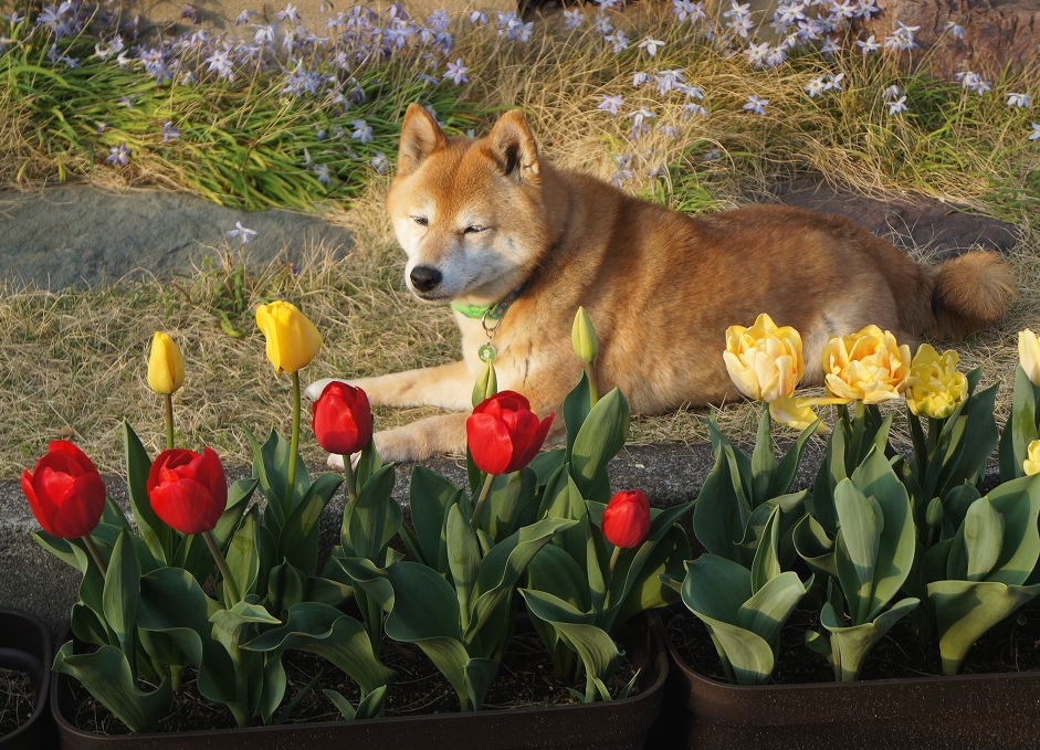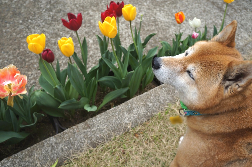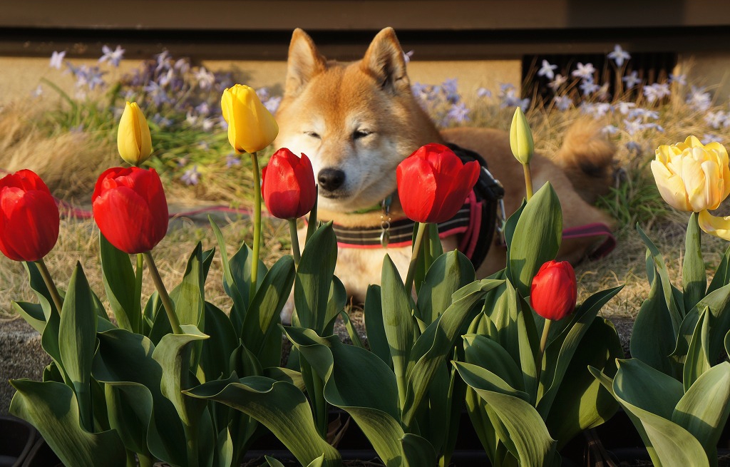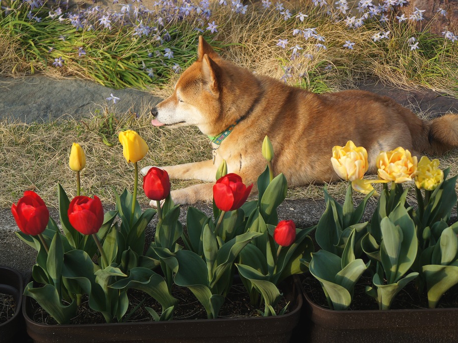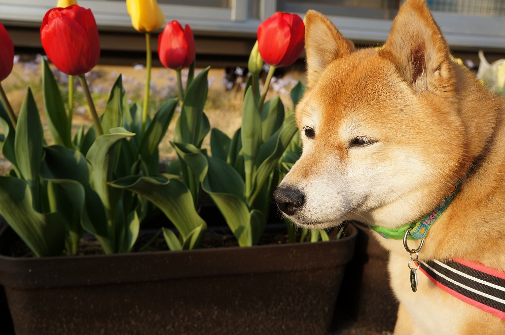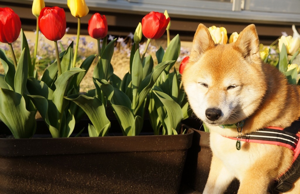 チューリップの番人(番犬!)わさびに【ポチッ】と♪