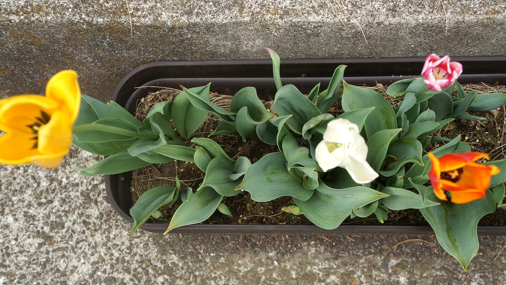 後列の普通の形の黄色も、白も5つのうち4つしかお花が咲かなかったので。