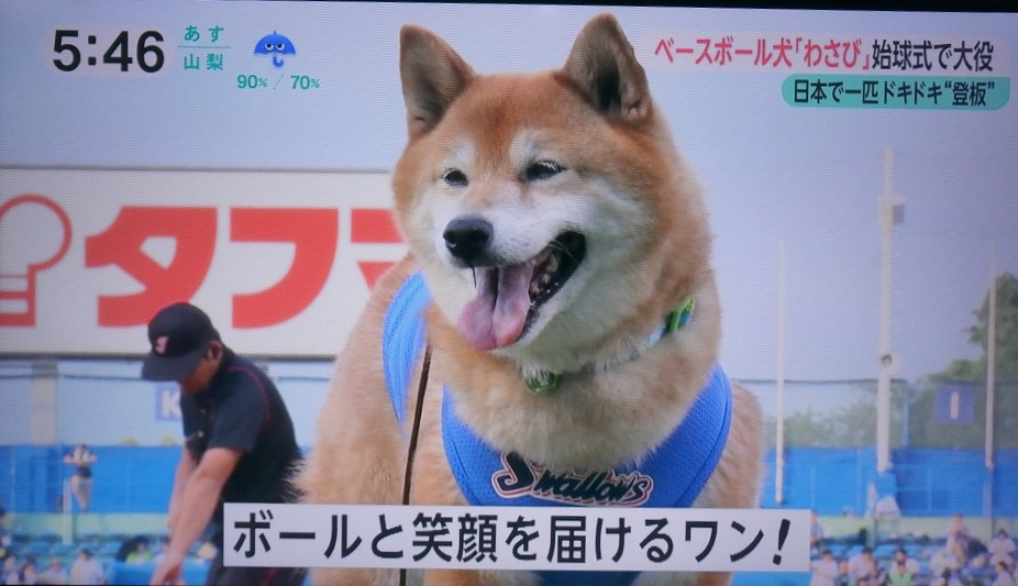 わさびちゃん登板の様子がみられてうれしい、うれしい~v(≧∇≦)v ♪ジャーマネさん、みられるようにしてくださりありがとうございます。フジテレビのニュースを作ってくださった方、素敵なニュースをありがとうございます。それもじっくりと2分半もっ!すごいことです。