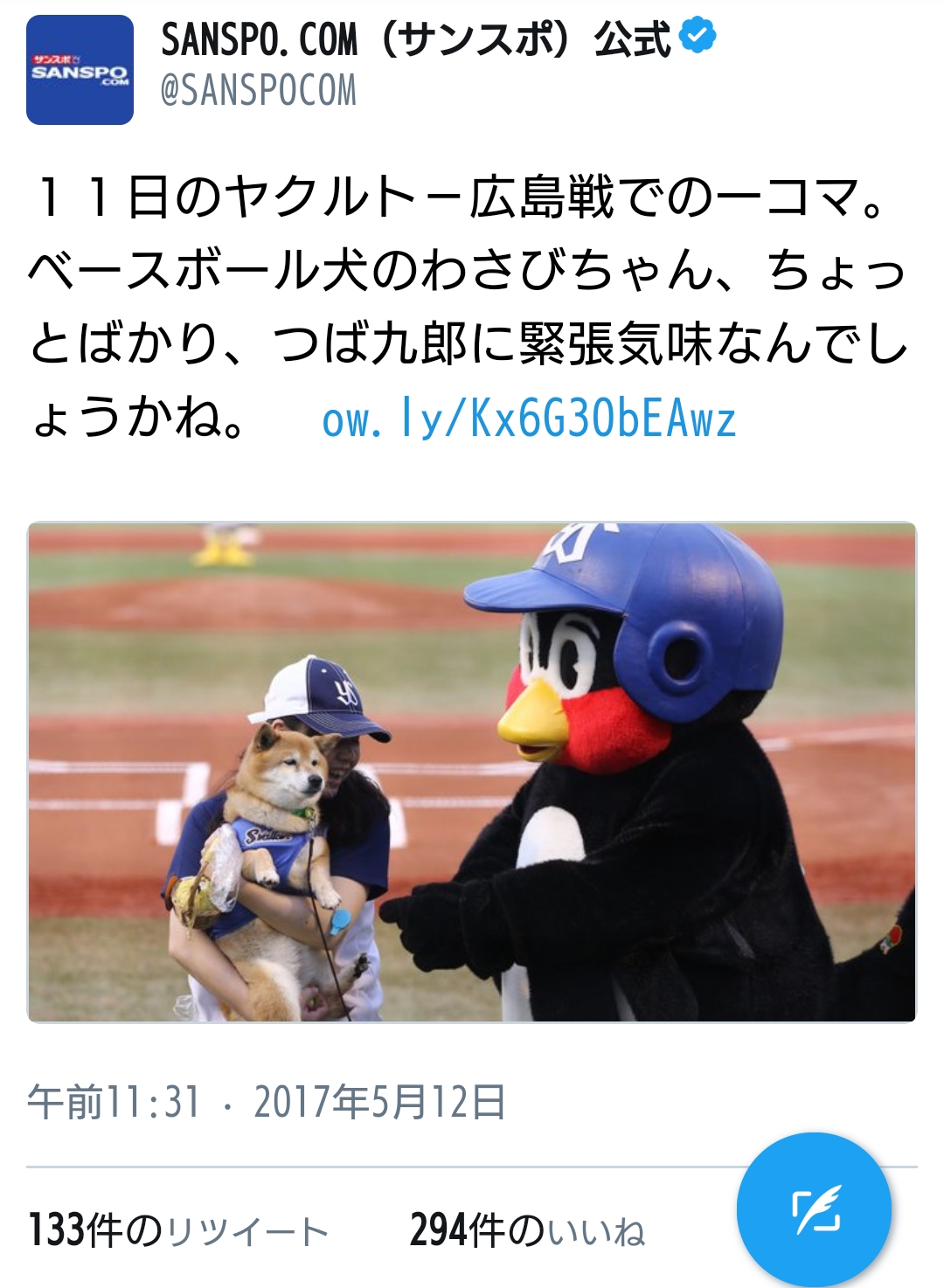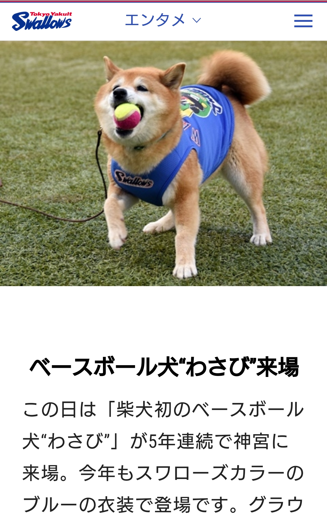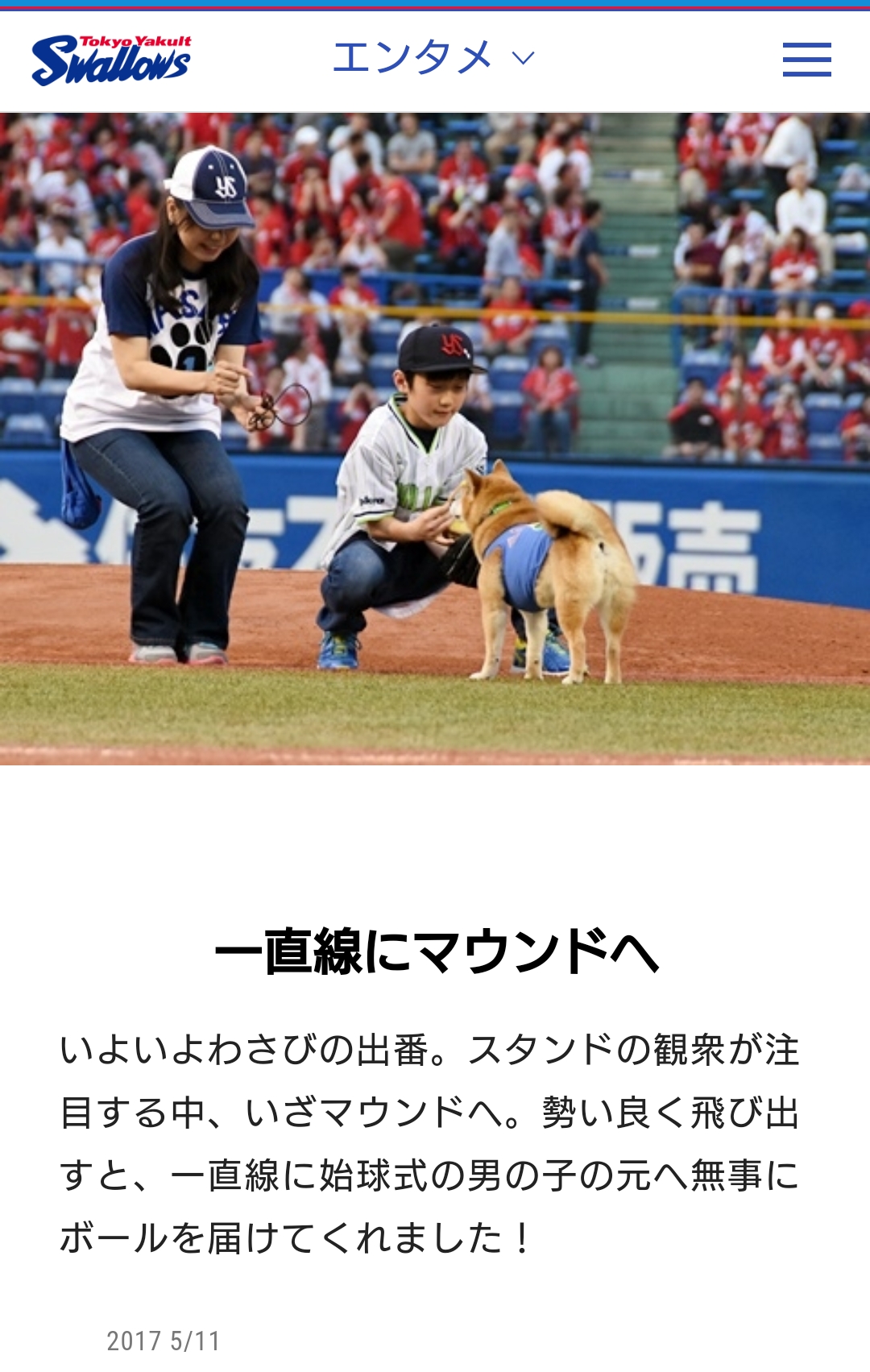 5月11日(木)広島戦に「柴犬初のベースボール犬“わさび”」が登場します