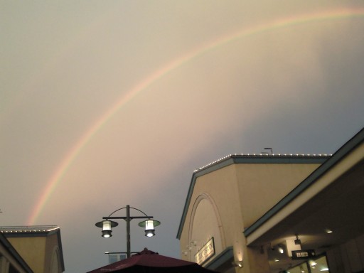 私、こんなにきれいなくっきりしたアーチ型の虹はじめてかも。