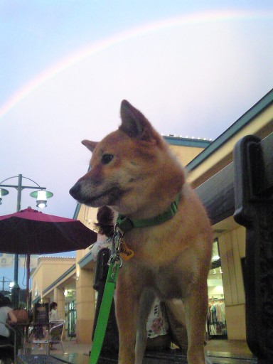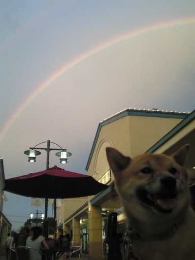 なんとか、わさびと虹を同じ画角に入れようと試みる親バカ。