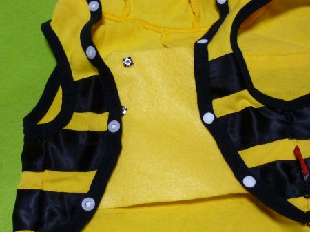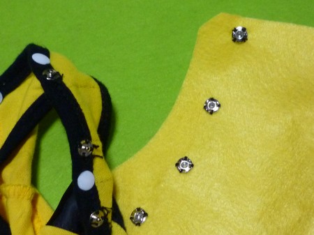 着せようとしたら、すでに胴周りのボタンがとまらず(汗)
