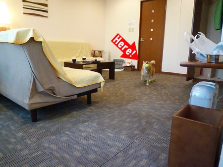 部屋が広いので、思わずボール遊び。