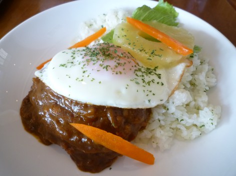 こちらは、人間ごはん。ビーフカレーとロコモコ。