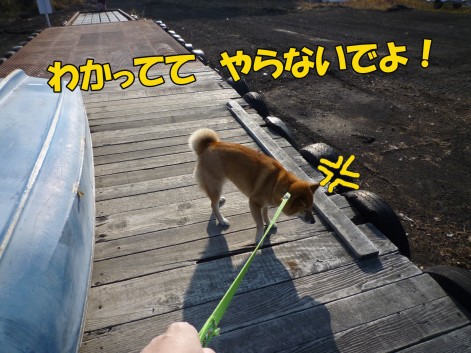 さて、食後は、わさびを水辺へ連れ出してみる。