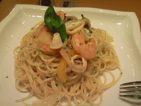人間用シーフードパスタ(左)と ココアフロート(右)