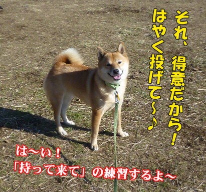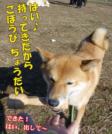 合図で取ってきて「スワレ→出せ→脚側停座」