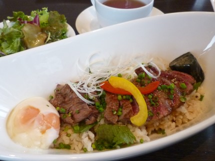 私がステーキ丼ランチセットで、