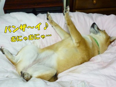 最後の試合の夜、バンザイの姿勢で寝ていたわさび…