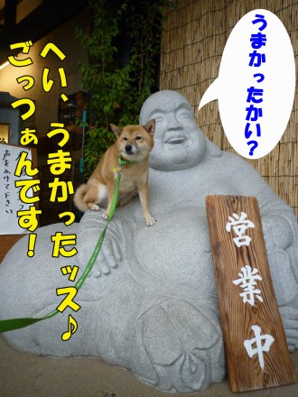お店の人が、入口のところでわさびと私の写真も押してくれたりして、