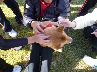必ず「下から、そっとだよ~。走って来ちゃダメだよ、わんちゃん怖がっちゃうからね~」とか