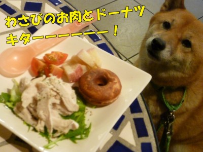 わさびには蒸し鶏とドーナツの「わんこプレート」です。